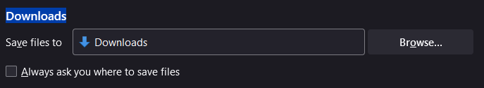 It is worth mentioning that the download location on the user's machine or network is determined exclusively by the settings used in the web browser. For example, a user may have a default download folder specified with no confirmation check when using Firefox, like in the image below.