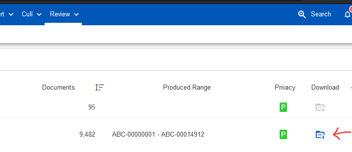 Productions that have available ZIP packages can be identified in the UI with the blue icon shown below (ZIP folder), which also conveniently serves as the button used to initiate the download process.