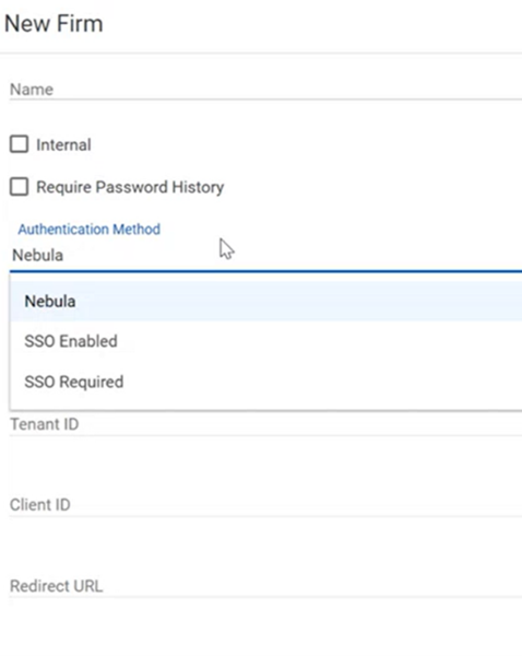 SSO Enabled: Firm Administrators can decide at the user-level whether to use SSO or the standard Nebula login credentials.