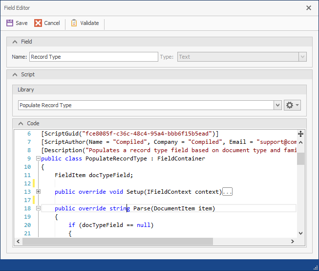 The existing GetOrCreateField method in ScriptContext now can accept an optional FieldType parameter – when provided, the expected FieldType must match the field that exists under the same name.