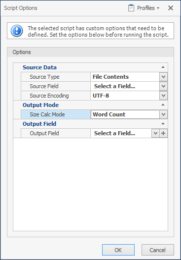 The Calculate Field Size script can now calculate the size of a field – instead of just an existing field. This reduces the need to separately use the ‘Text Files to Field’ script before running the Calculate Field Size script. We’ve also added an option to report the number of words instead of number of characters or byte size.